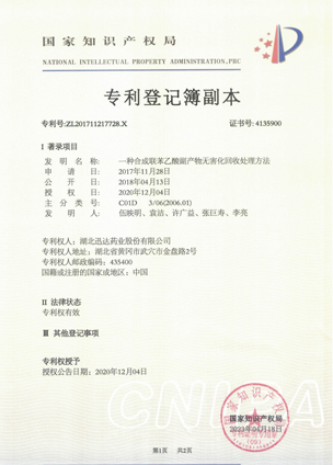 湖北迅達藥業(yè)股份有限公司是專業(yè)從事醫(yī)藥原料藥及中間體生產經營的國家重點高新技術企業(yè),也是國家 4A 標準化良好行為企業(yè)、湖北省智能制造試點示范企業(yè)、湖北省國際科技合作基地、湖北省信息化與工業(yè)化融合試點示范企業(yè)、湖北省創(chuàng)新型企業(yè)、湖北省上市后備“金種子”企業(yè)、省級“專精特新”企業(yè)、上云標桿企業(yè)。公司被評為湖北省醫(yī)藥工業(yè)五十強、湖北省醫(yī)藥行業(yè)創(chuàng)新型企業(yè)十強、湖北省醫(yī)藥行業(yè)出口型企業(yè)十強、湖北省優(yōu)秀企業(yè)、湖北省“重合同守信用”企業(yè)、湖北省模范勞動關系和諧企業(yè)、湖北知識產權示范企業(yè)、中國外貿出口先導指數(shù)樣本企業(yè)。